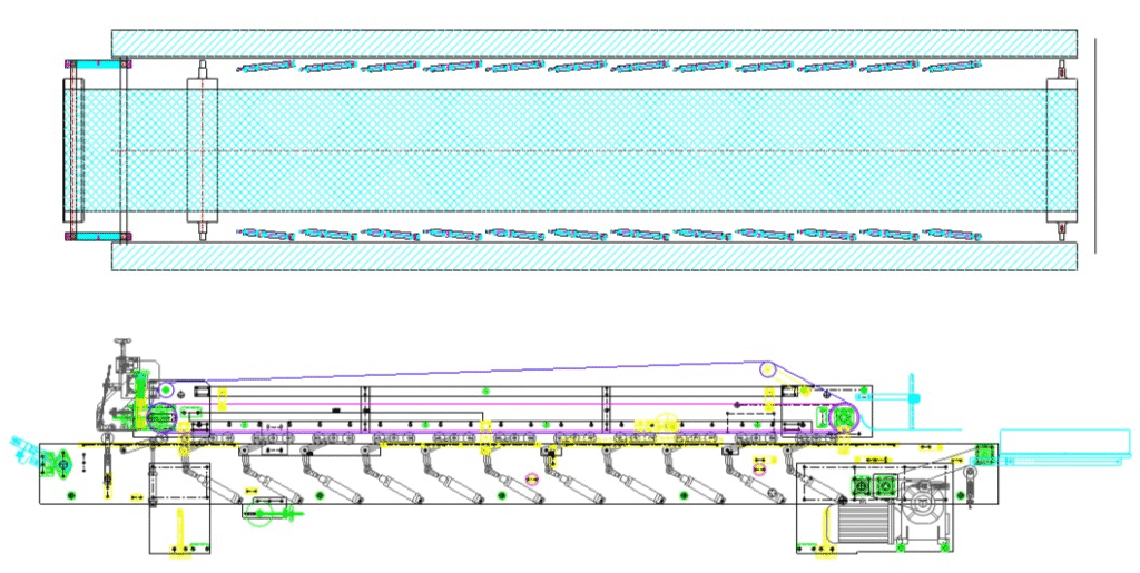 - Self-driven upper belt carrier, the upper carrier move by pneumatic control.